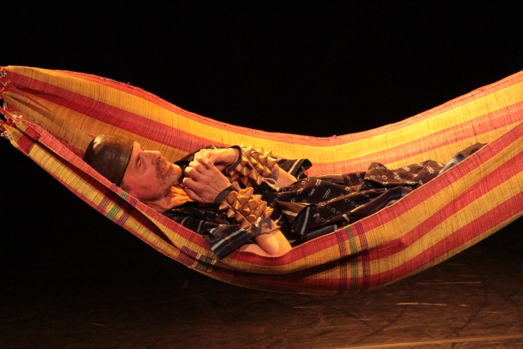 Le superbe texte de Laurent Gaudé nous transporte sur les rives du Niger où les lumières tamisées sur le fleuve Niger, le bruit et les odeurs nous sont suggérés. Nous  sommes au coeur de cette Afrique qui se bat contre l’oppression coloniale. La poésie du texte de Laurent Gaudé se marie naturellement avec la cruauté des évènements, des personnages et des lieux. Tel un griot, Vincent Barraud, du fond de son hamac ou pirogue, nous narre cette vie cabossée, entrecoupée de morceaux d’harmonica. Ces transitions installent cette atmosphère nostalgique permettant à l’imagination du spectateur de vagabonder. On assiste à une page d’histoire où le fracas du siècle s’éloigne de l’Europe pour se fixer en Afrique. Vincent Barraud accomplit une performance merveilleuse dans cette narration pleine de couleurs, de sons et de fureur. Un voyage au long cours qui se déguste !